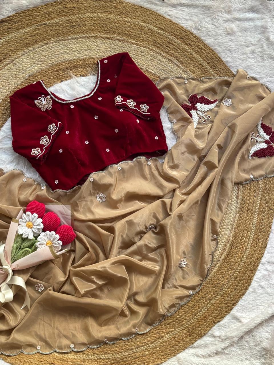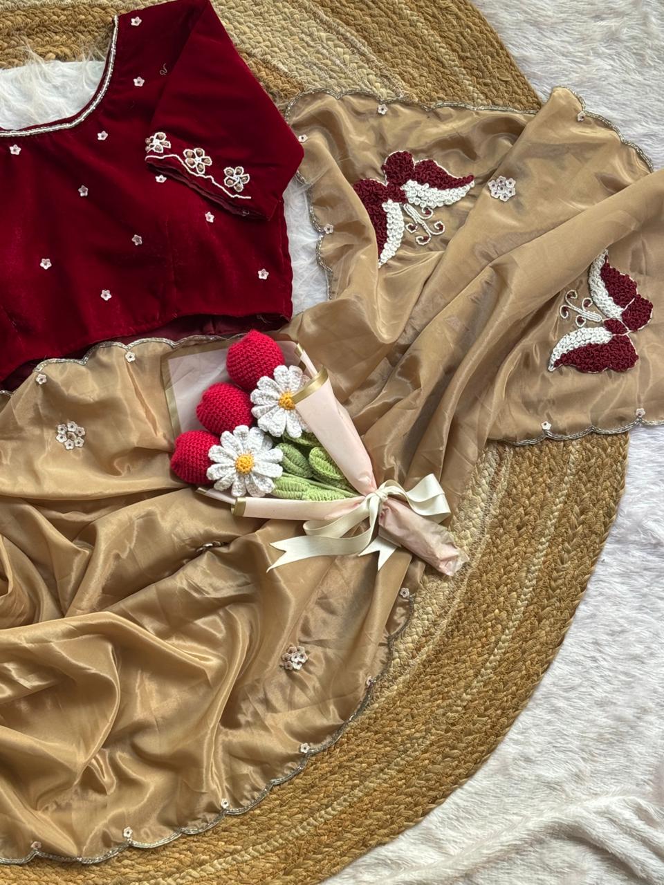 Butterfly Ring Handwork HO Silk Saree ✨